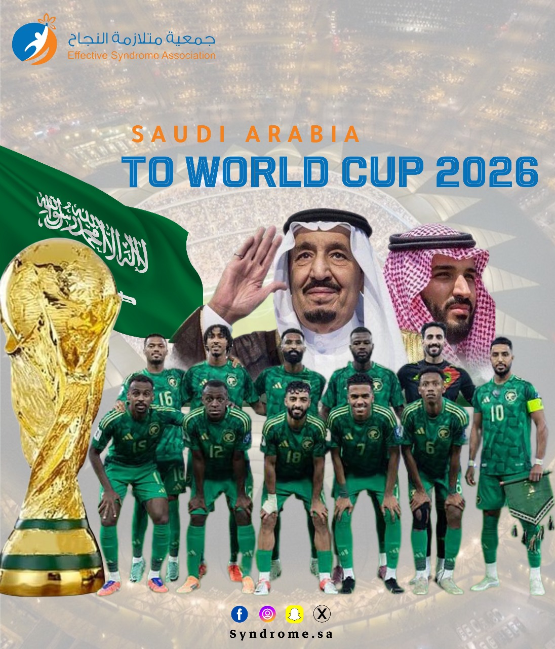 تتقدم جمعية متلازمة النجاح بالتهنئة الى القيادة الرشيدة والى الشعب السعودي بمناسبة تأهل منتخبنا لمونديال 2026م