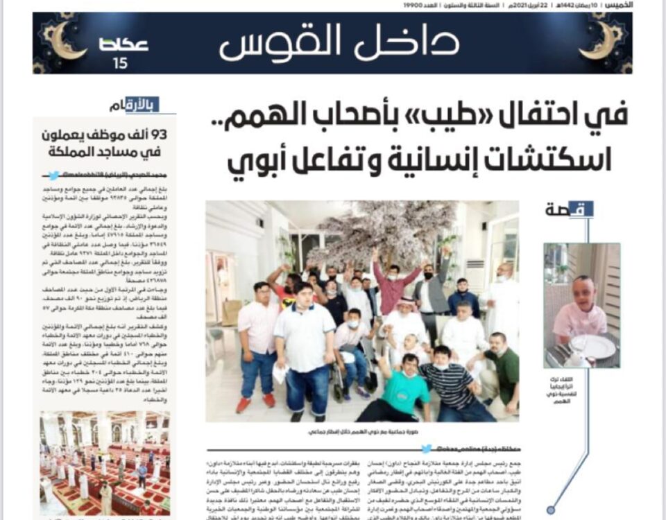 بالتعاون مع جمعية عيون جدة .. وضمن سلسلة فعاليات الأحتفال بعيد الفطر المبارك ، في يوم الثلاثاء الموافق ٢٠٢١/٥/٢٥م دعت جمعية متلازمة النجاح الأطفال من ذوي […]
