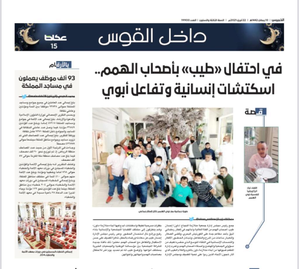 بدعوة كريمة من مطعم الشرافة بالحمراء من صاحبه السيد بندر سعود كعكي لأبناءه من جمعية متلازمة النجاح لذوي متلازمة داون لحضور افطار رمضان يوم الإثنين ٧رمضان […]
